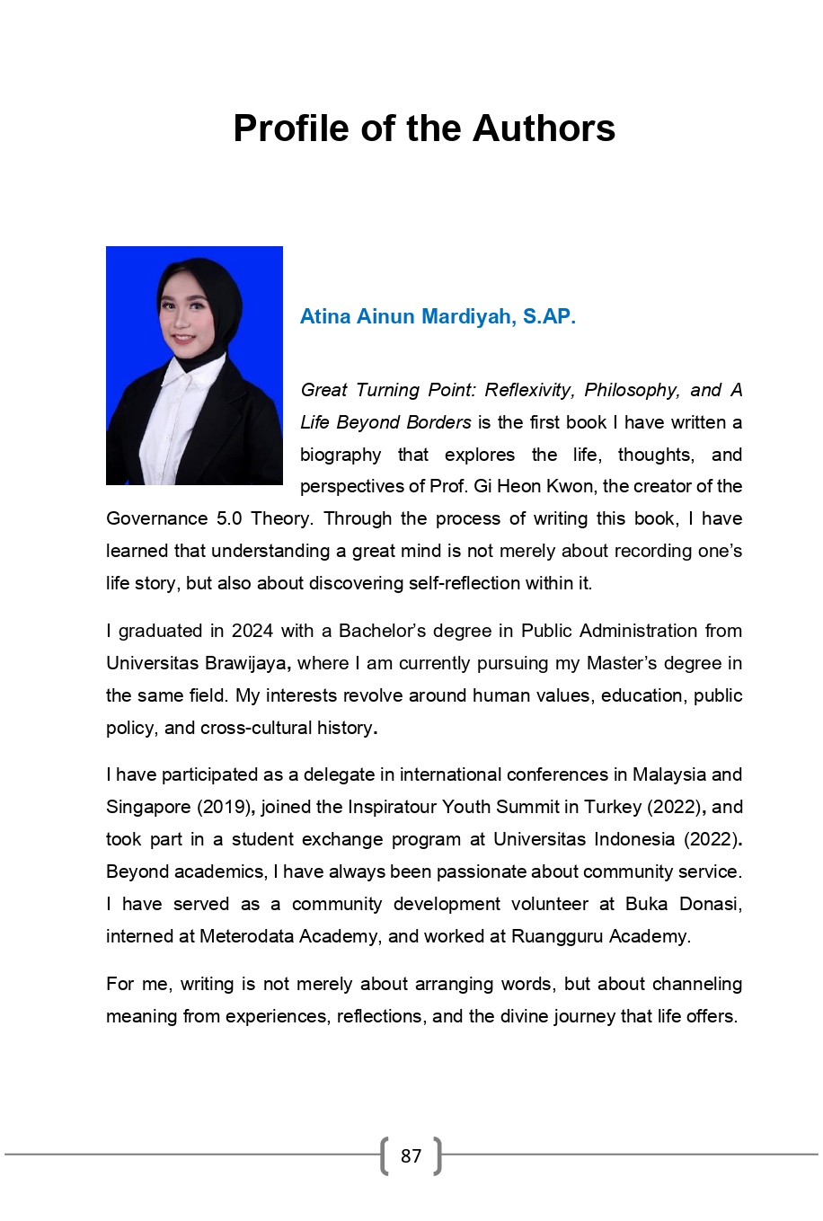 More than a chronicle of achievements, this book captures the story of a man who believes that genuine progress begins from self-awareness and the courage to change. Through moments of struggle, contemplation, and discovery, his life invites readers to reflect on their own journey to ask not only what they have achieved, but what kind of person they have become.