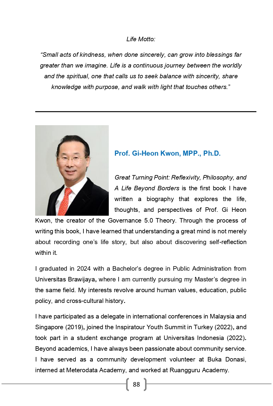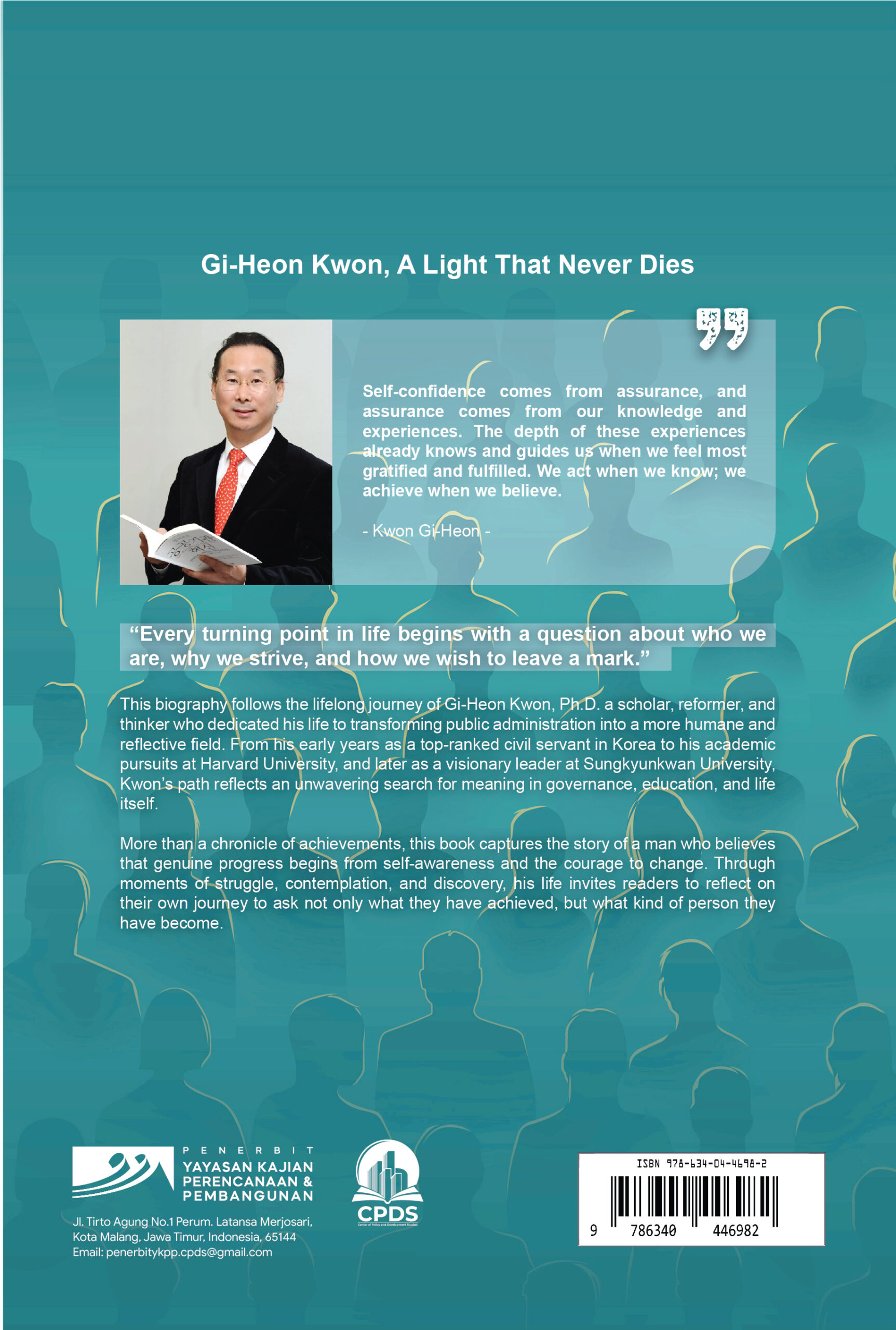 This biography follows the lifelong journey of Gi-Heon Kwon, Ph.D. a scholar, reformer, and thinker who dedicated his life to transforming public administration into a more humane and reflective field. From his early years as a top-ranked civil servant in Korea to his academic pursuits at Harvard University, and later as a visionary leader at Sungkyunkwan University, Kwon’s path reflects an unwavering search for meaning in governance, education, and life itself.