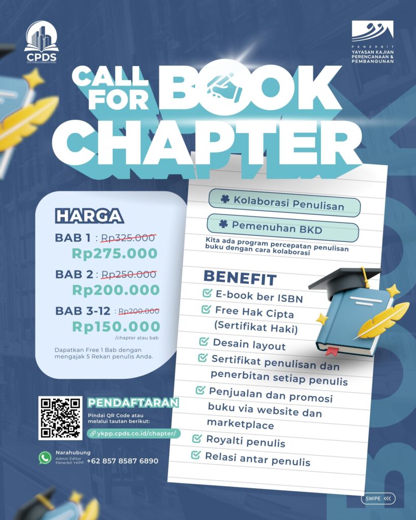 Call for Book Chapter adalah program penulisan buku kolaboratif ber-ISBN bagi dosen, peneliti, praktisi, dan mahasiswa untuk menuangkan gagasan serta hasil riset yang relevan dengan masa depan Indonesia. Melalui sistem kolaborasi yang terstruktur, setiap penulis mendapatkan fasilitasi penerbitan, legalitas karya, hingga distribusi buku secara luas.